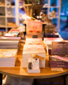 Denk aan edelstenen, self-care, sieraden, chocolade, olijfolie, kaarten, boeken, kleren van natuurlijke materialen en andere soulful lifestyle items.